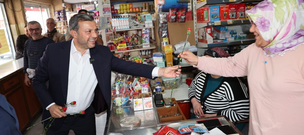 üzerindeki esnafa da uğrayan Kocaispir, çalışan kadınları kutladı.