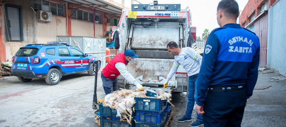 Ele geçirilen yüzlerce karkas tavuk ölüsü, halk sağlığına yönelik tehlike oluşturmaması için derhal Seyhan Belediyesi Temizlik İşleri Müdürlüğü ekiplerine teslim edildi. Temizlik İşleri ekipleri de kokmuş ve bozulmuş tavukları toplayarak, hijyen kurallarına uygun şekilde imha işlemini gerçekleştirdi.