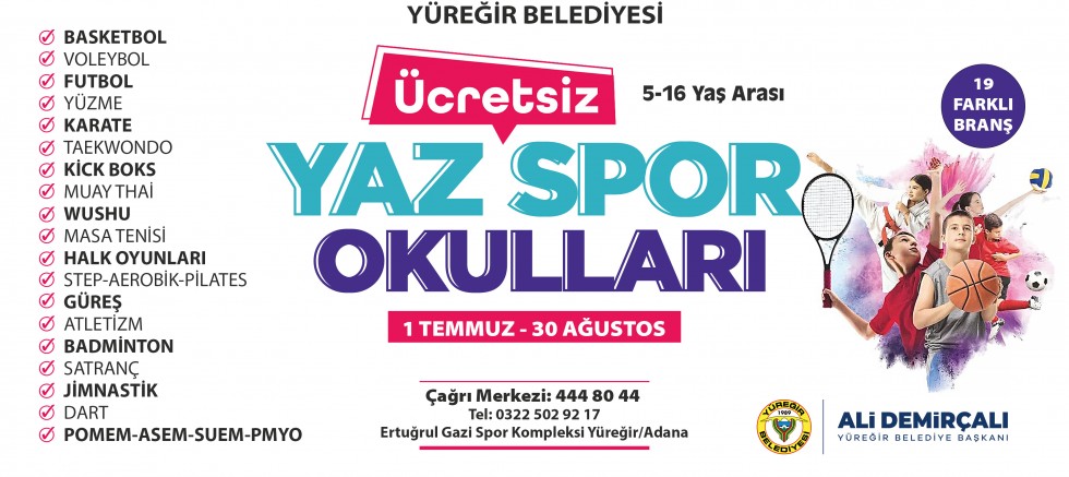 Yüreğir Belediyesi Yaz Spor Okulları 1 Temmuz Pazartesi günü başlıyor.